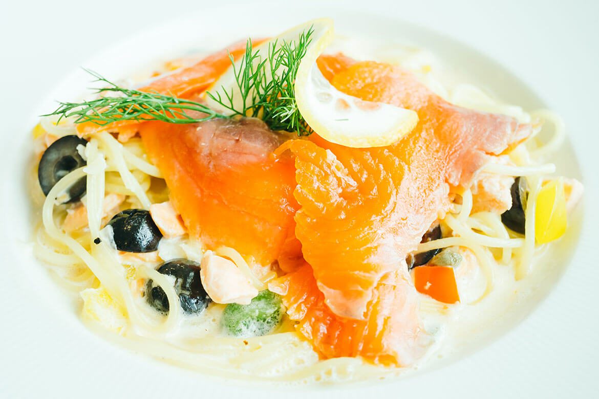 Cheese, salmon & rosemary salad
