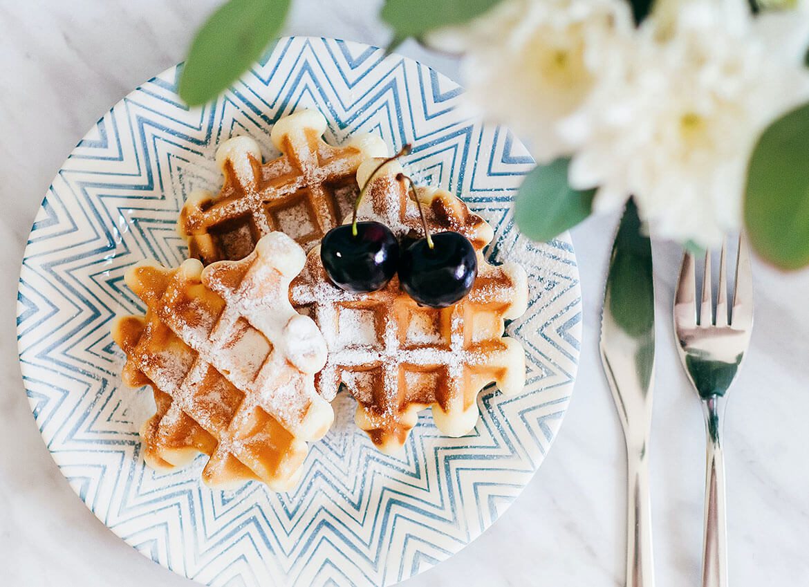 Cherry blueberry waffle with honey